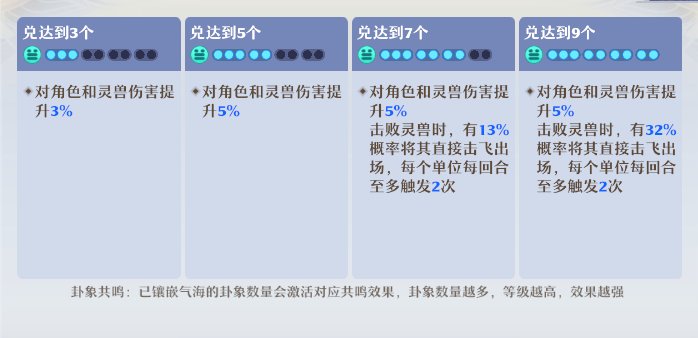pvp中共鸣选择兑为主,巽为副,兑卦可以有概率直接击飞灵兽,而且还有对角色增加伤害的效果,选择守尸也非常适合