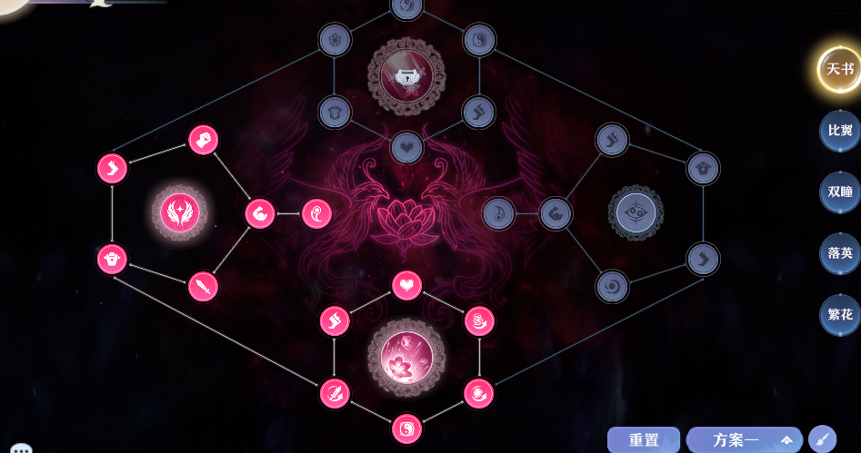 PVE和PVP推荐繁花+比翼就好,对目标造成3次固定物理伤害并施加3回合封印,目标施加伤心花状态能够触发助攻攻击,星魂选择右边(星魂110级开放)