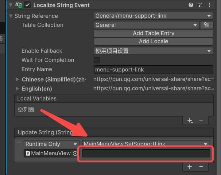 在使用 Unity Localization 官方包时,有时会发现 LocalizeStringEvent 的 UpdateString 事件出现异常:面板上多出一个文本输入框,且运行时翻译失效(始终返回空字符串)。