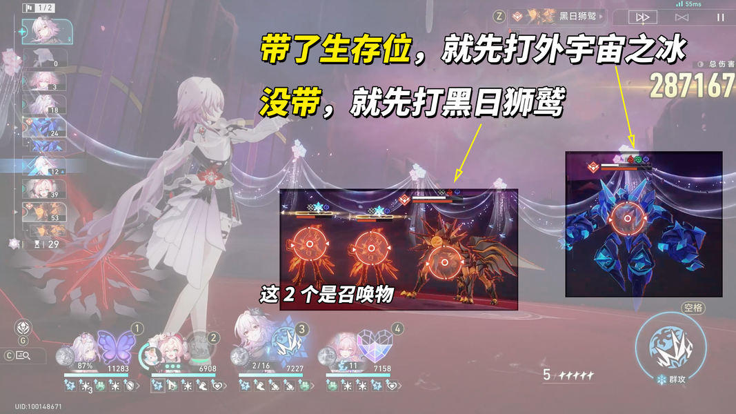第2波,尽量在新轮次开始之前,将场地上其他召唤物以及布洛妮娅消灭,使百分比扣血全部结算到可可利亚身上,能贡献个几十万输出。