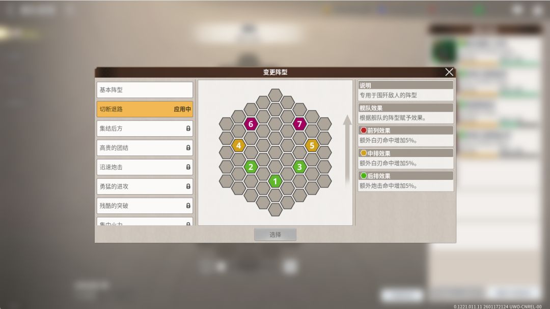 战斗开始前,玩家可通过 [菜单] - [舰队] - [基本阵型] 的路径设置舰队阵型。