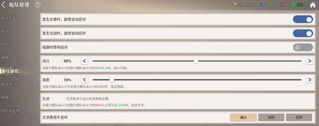 - 委任副官:该功能可设置离线航海期间,遭遇战斗或灾害时副官的应对方式,玩家可手动开启或关闭。