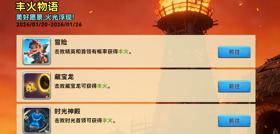 丰火祭典将于1月20日开启(需通关冒险1-7),带来全新挑战与丰厚奖励!