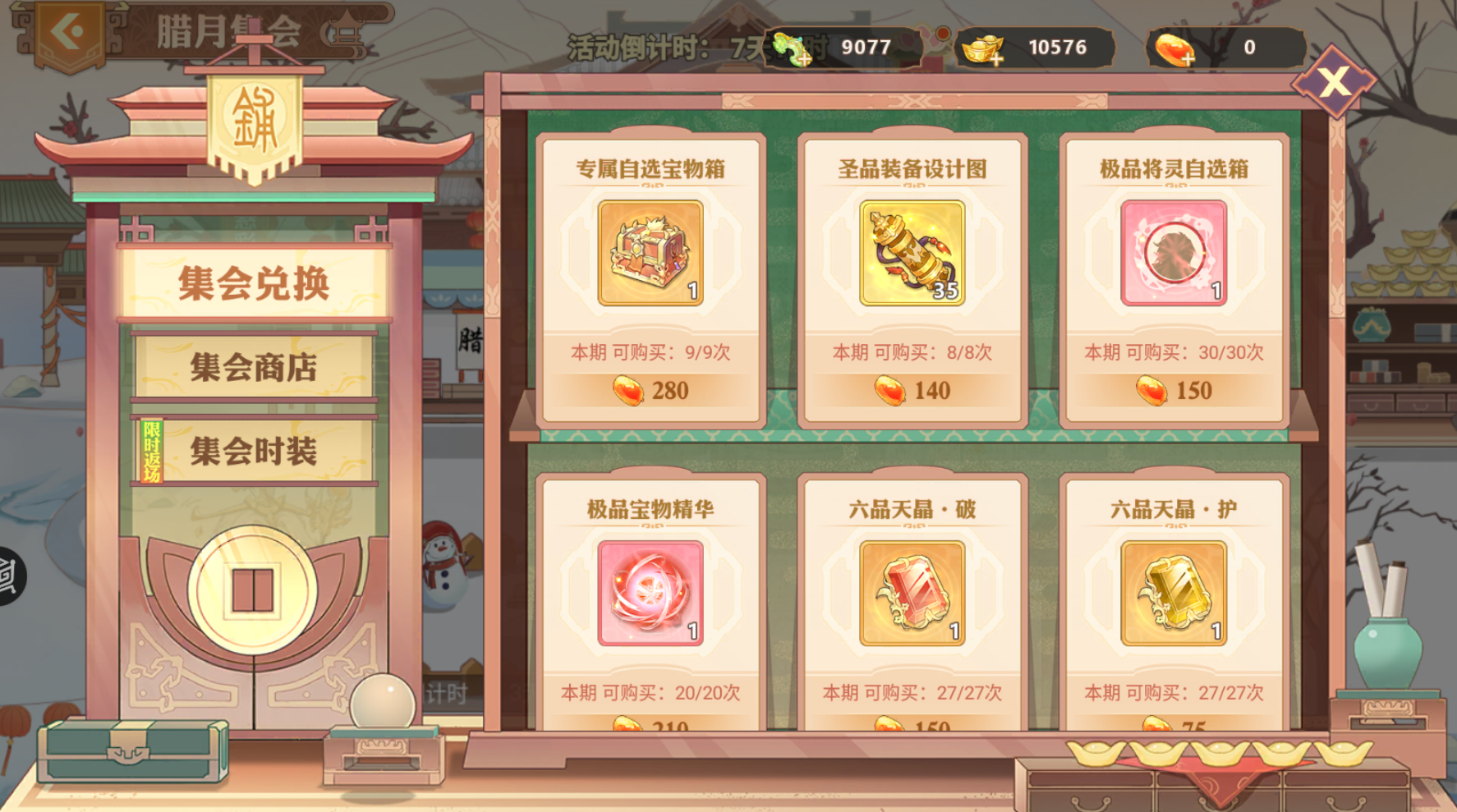 1、「集会商铺」、「集会悬彩」、「腊月祈福」限时开放,超多白嫖道具、超值礼包、限时时装等你来选购!