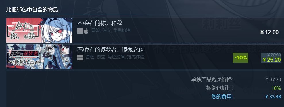 同步上架的还有系列捆绑包,包含前作《不/存在的你,和我》与新作,支持已购玩家补齐购买,同样享受九折优惠。作为系列一周年重磅更新,新作延续剧情驱动玩法,玩家将主导冒险抉择、搭配队伍技能,吸引不少系列粉丝期待。