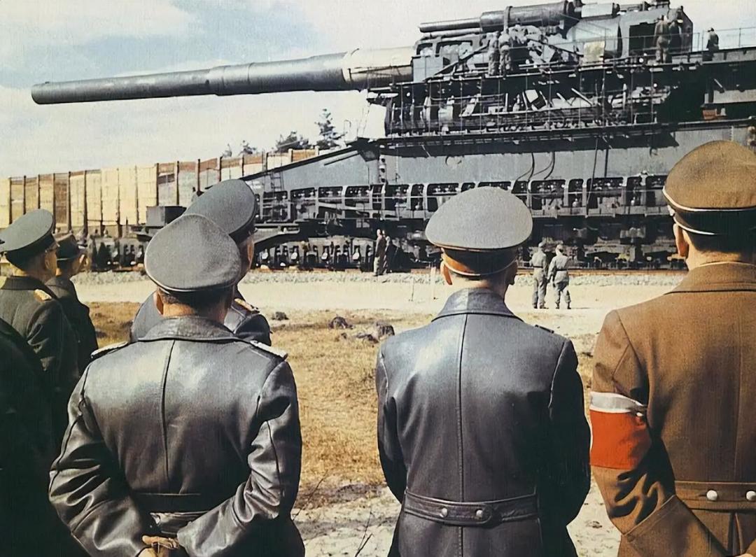 这门巨炮堪称工业时代的武器奇观,炮管长32米,战斗状态下更是延伸至53米,高12米,全重高达1488吨,单是指挥、操作和警卫人员就需要4000人以上。它的穿甲弹重7.1吨,高爆弹重4.8吨,推进燃料也需要1.8到2吨,普通火车根本无法牵引,克虏伯公司专门设计了两台1050马力、时速60千米的巨型机车才勉强胜任,它也是战争史上实战口径最大、体积和重量最大、发射炮弹最重的陆地火炮。