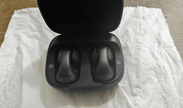 颜值百搭,鹅卵石充电仓 + 圆头耳夹设计,像小配饰不突兀,就是亮面材质易沾指纹,配个磨砂套就解决。单耳5.4g轻到无感,8小时久戴无压痕,戴眼镜也不硌,超适合打工人。多曲率软梁可微调,跑步跳绳都不掉,运动党放心冲,只是小耳型朋友需多适应。12mm镀钛动圈音质均衡,定向传声防漏音不错,日常听歌够用,就是低频下潜不足,听感不是特别好。