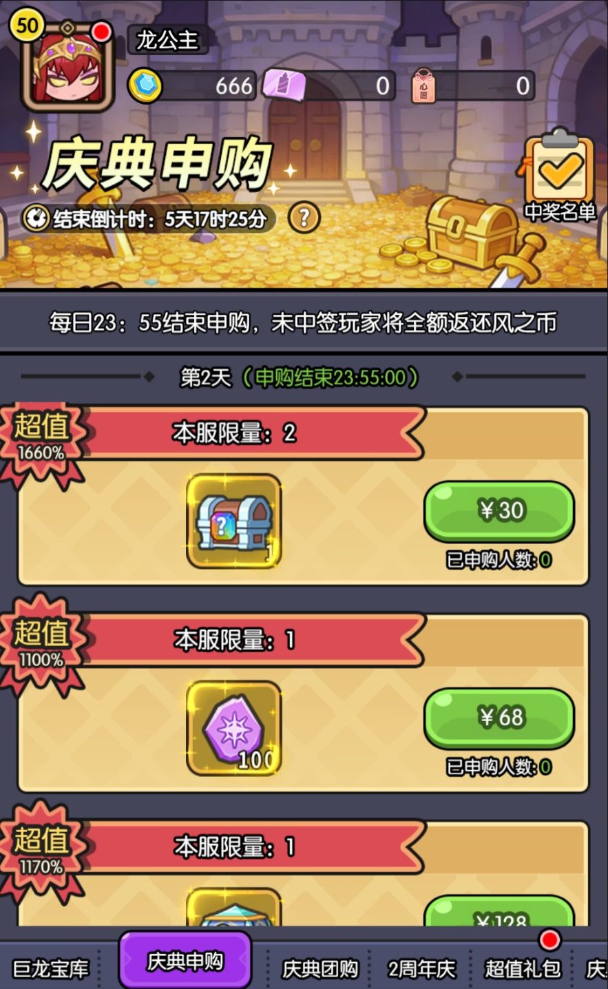 申购规则:城主大大需使用RMB直购礼包并进行抽签。