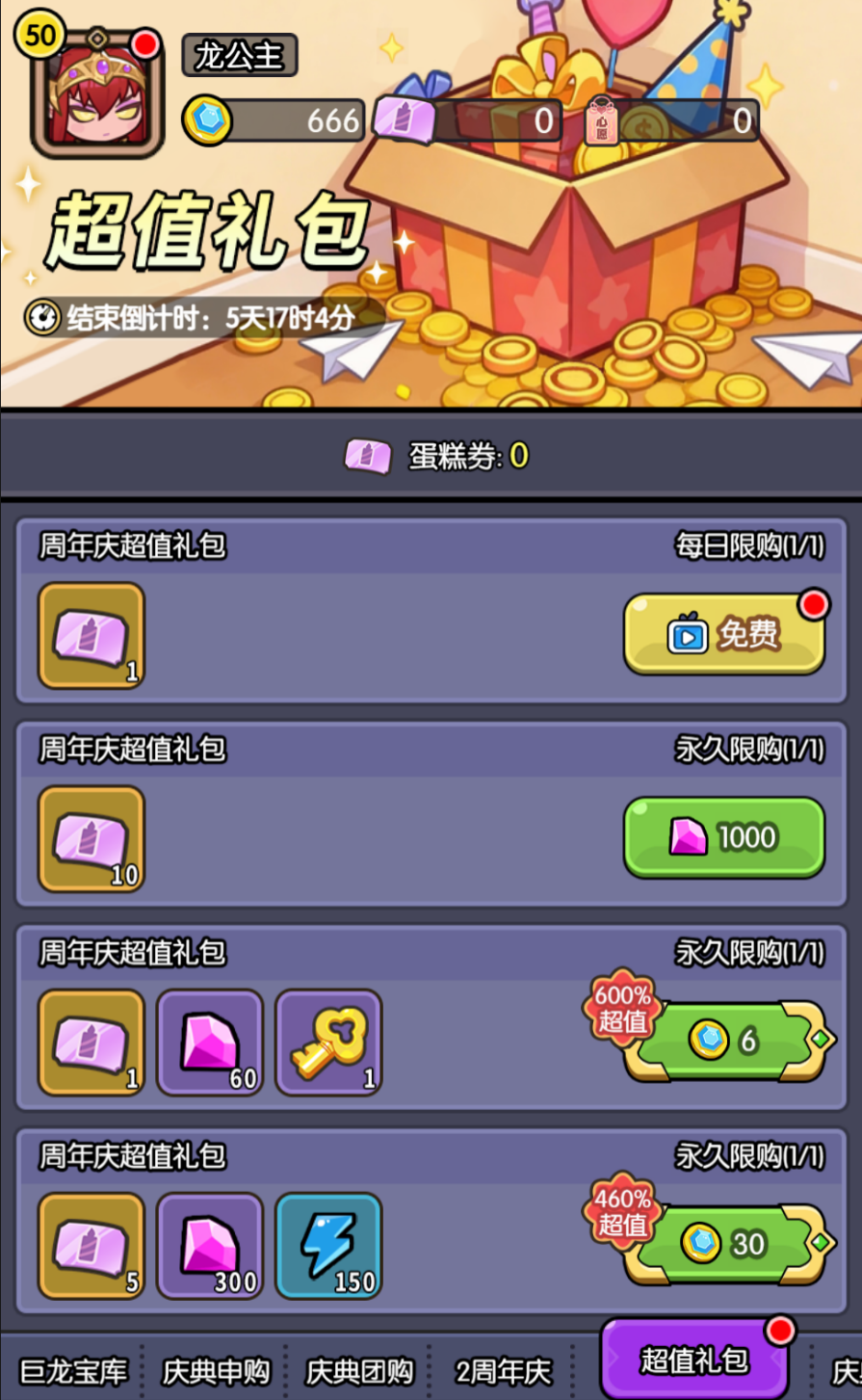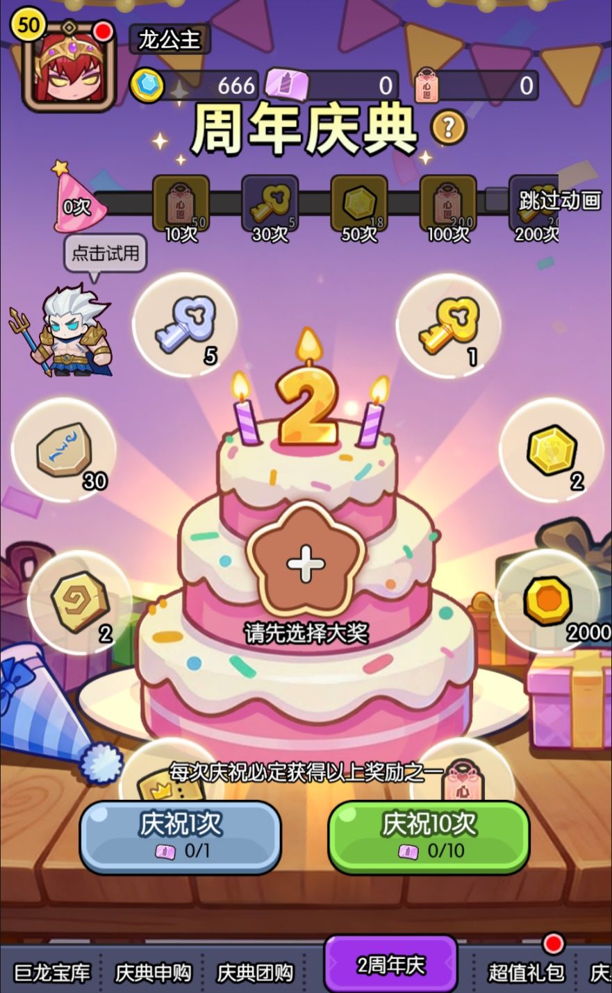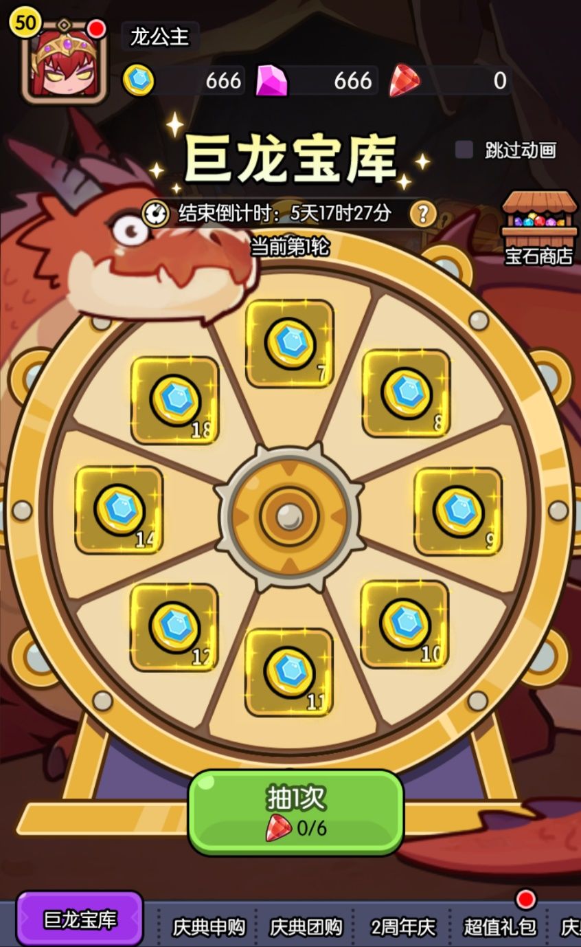 为了庆祝两周年,龙公主准备了华丽的周年转盘,华丽皮肤与丰厚道具都在向你招手!
