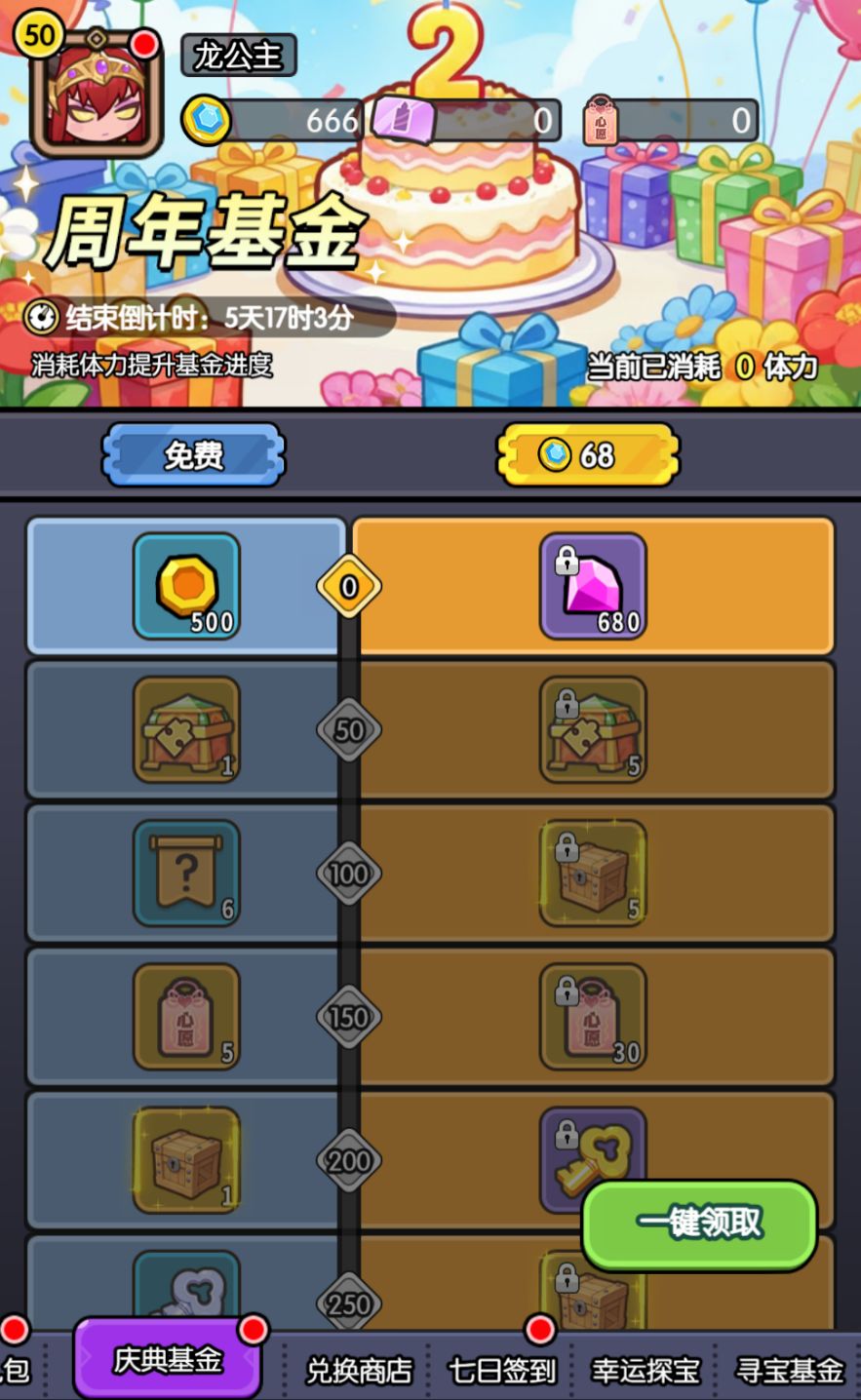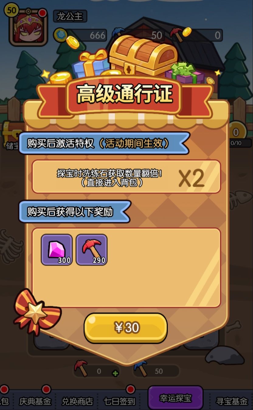为保证城主大大们挖得开心,挖得愉快!龙公主特意开设寻宝基金,通过消耗铲子即可提升基金进度,购买基金还能额外获得大量铲子!