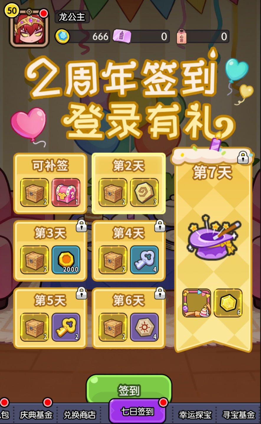 一、 七日签到:周年有礼
