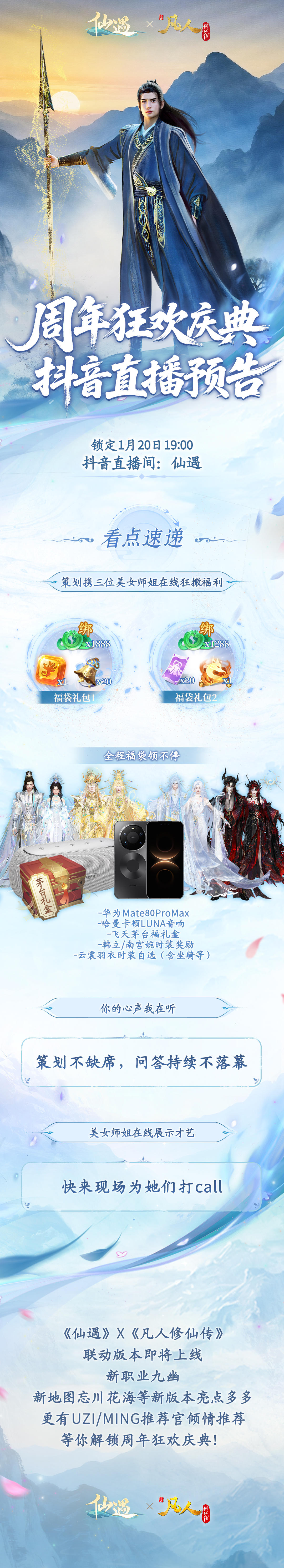 除此之外,周年庆直播也狂送豪礼!直播现场将抽出华为Mate 80 Pro Max、茅台礼盒、凡修联动时装「凡心天尊」等惊喜好礼!