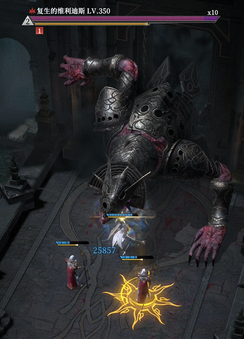 开局循环使用两个闪电瓶控制Boss攻速的同时延缓Boss的能量恢复速度,在Boss满能量要准备施放能量技时候用审判之锤进行有效控制并且等灾厄之祭第二个恶魔冷却好(不可以提前用,奶妈会回血导致狂想旋律触发不了咒骂被动)。