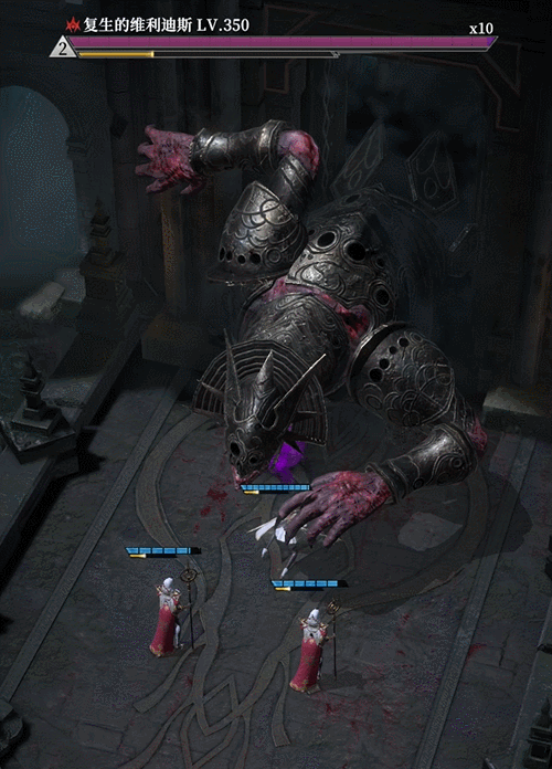 Boss复活时必减员一个单位,然后再释放一次能量技。此时阵容里亲王的分身和恶魔,就可以降低后排被选中的概率,如果C位和奶妈都成功存活,那剩下的就是控制好Boss猛猛输出就可以顺利通关了。