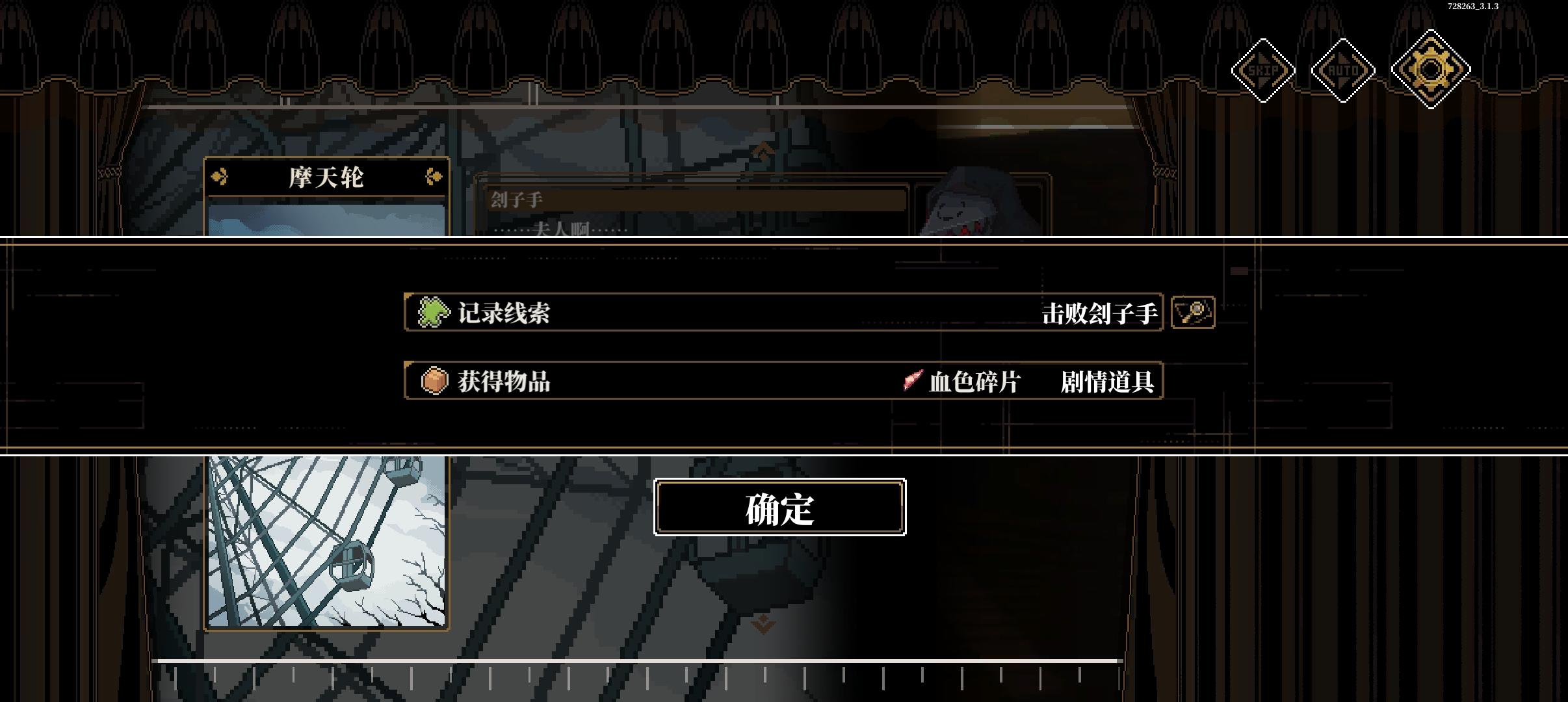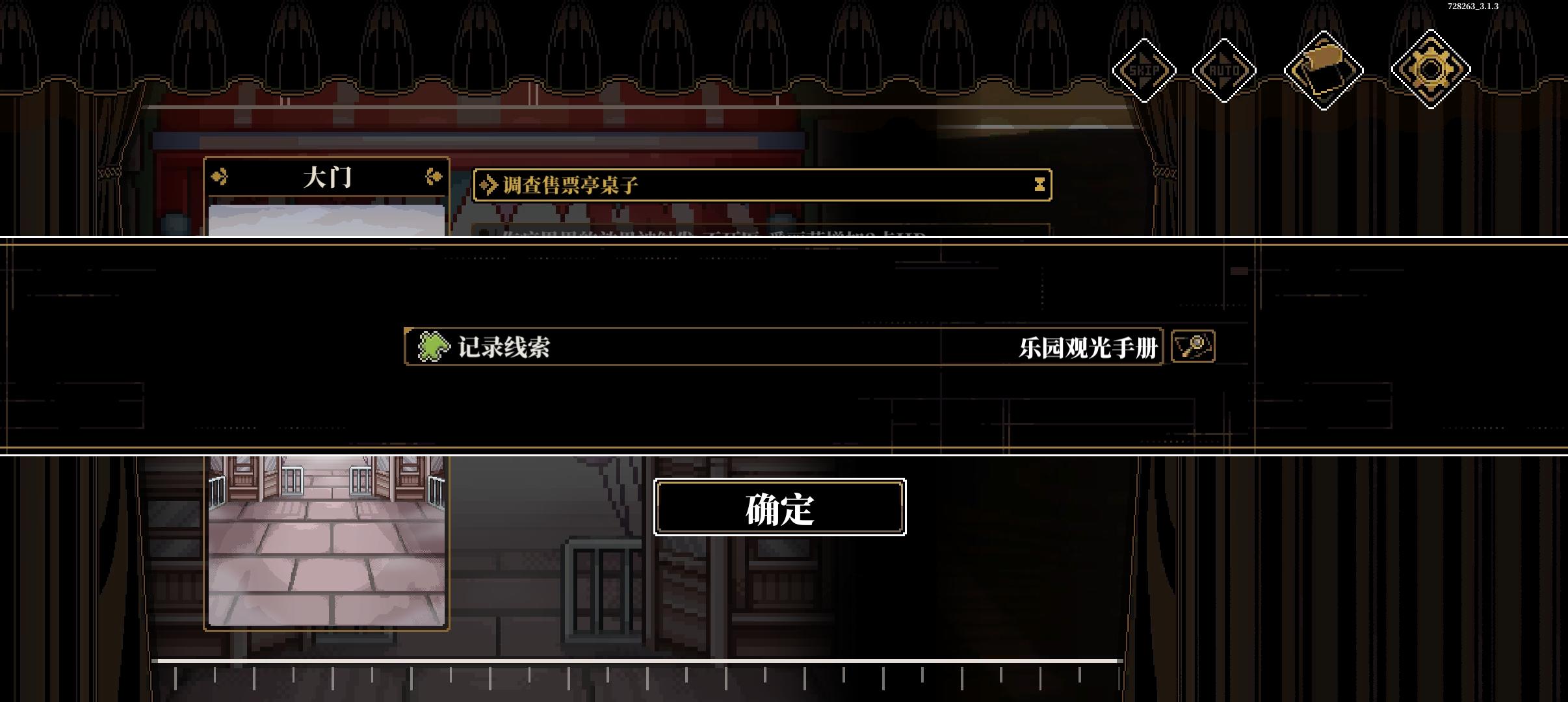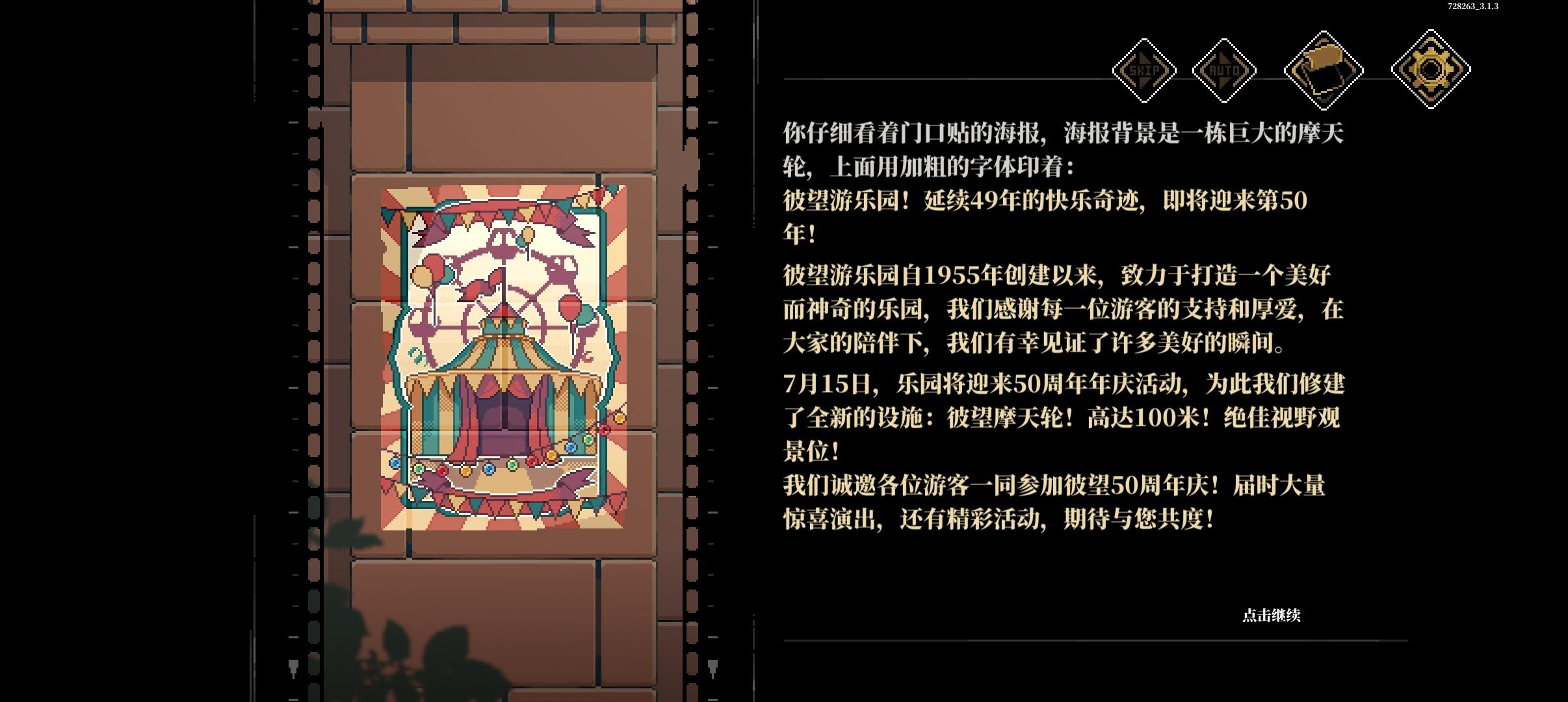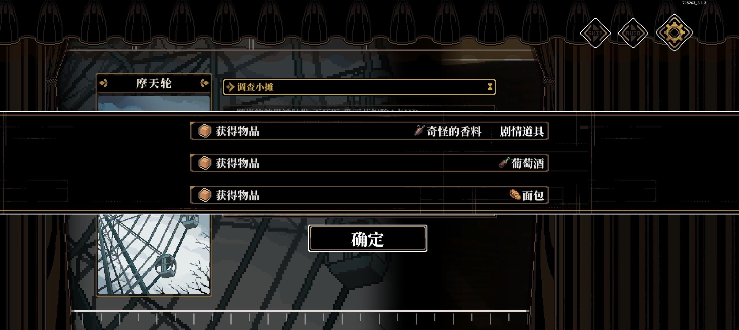 接着“去操作室”,“停止摩天轮”,就可以与小丑亚历克斯对话,拿到必要道具和真结局前置之一:强制微笑