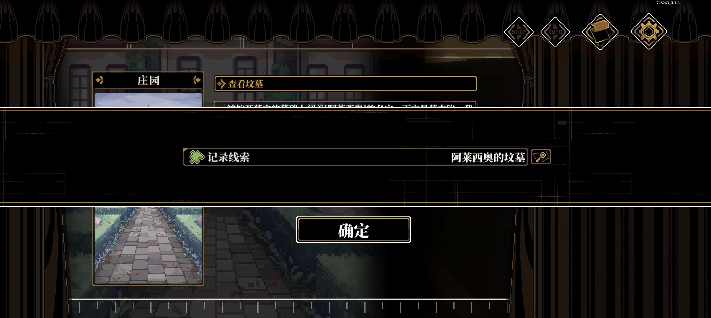 接着回到庄园,“探索深处”,“查看坟墓”,拿到坟墓前戒指缺失的线索,然后“触碰传送气泡”去美食园