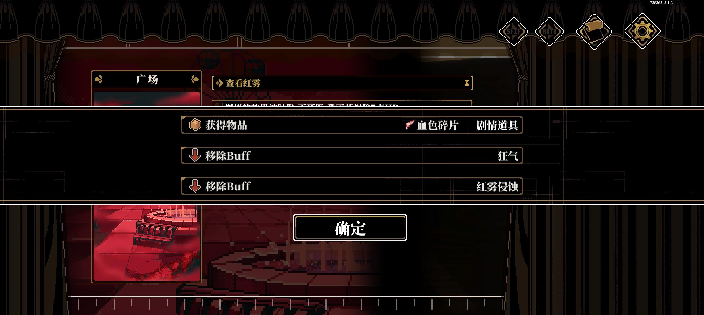 在广场“查看红雾”,“查看红色的花”,期间会触发真结局前置之一:“乐园烟火”