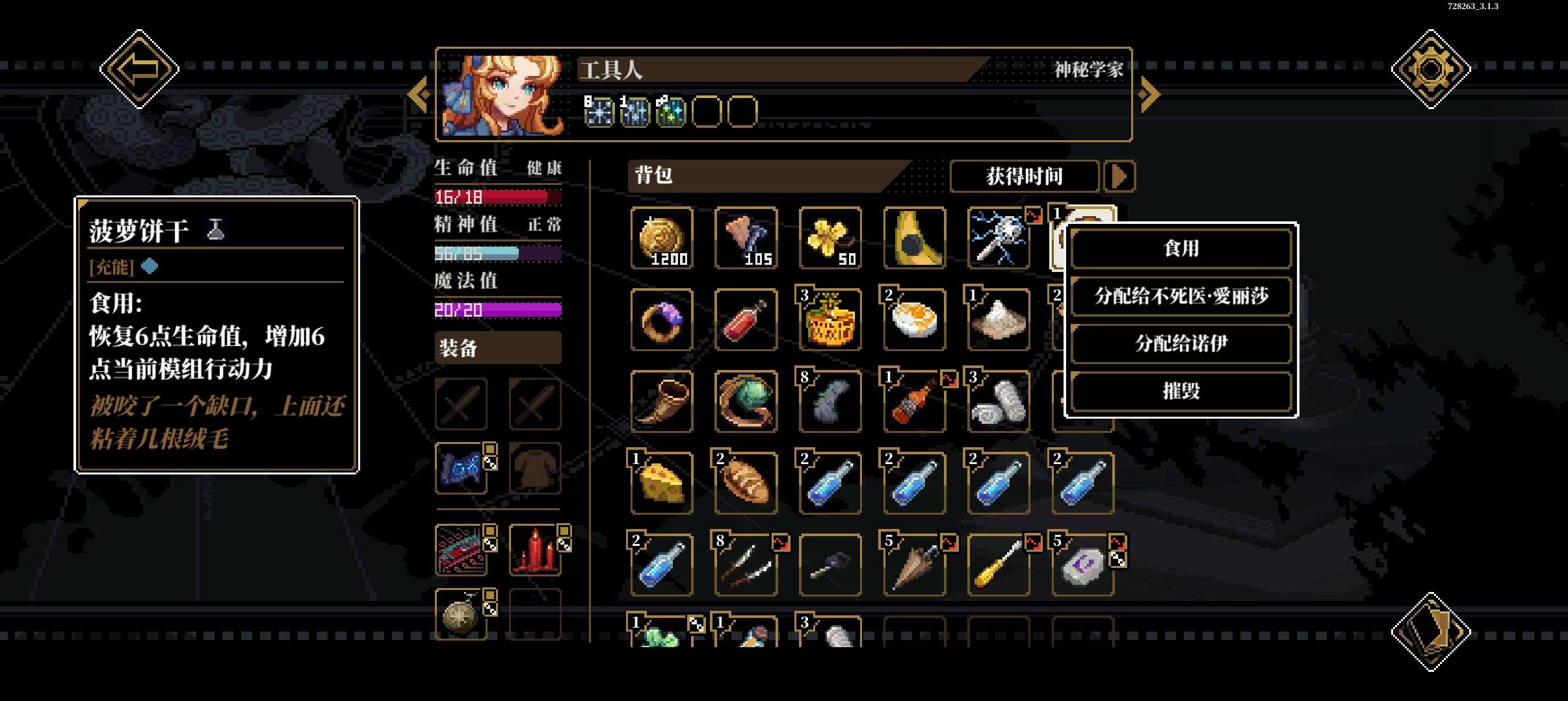 神话物品“黄金蜂蜜酒”抽完必出,存档是为了拿概率出现的关键道具“菠萝饼干”,吃下获取白天的六点行动力