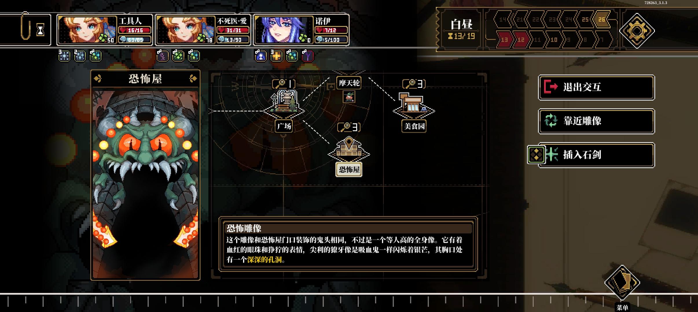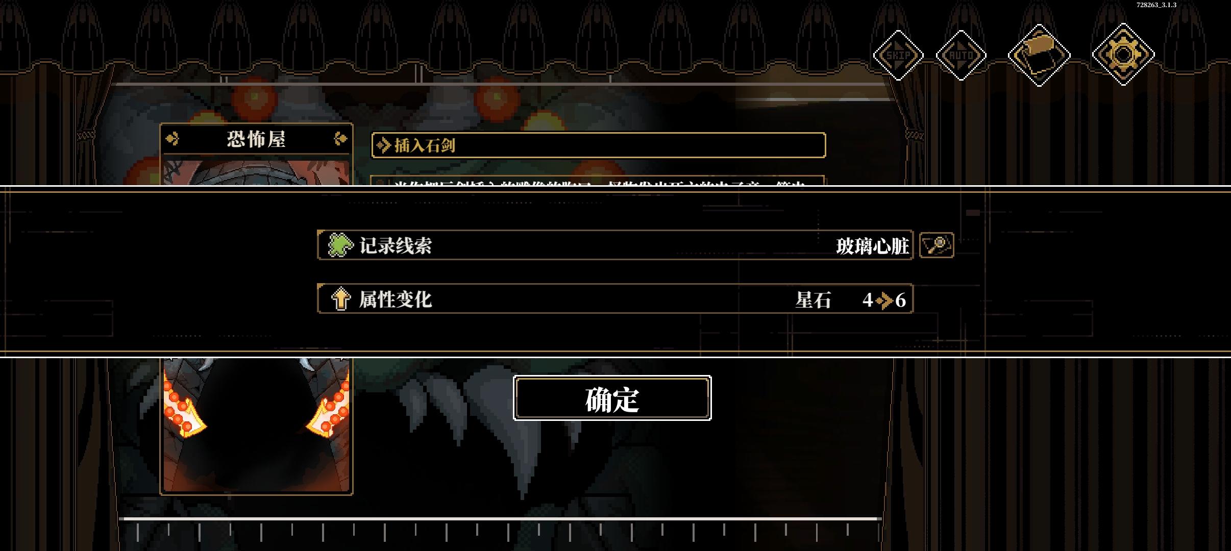 做完直接去恐怖屋,触发战斗后选“查看恐怖雕像”,“插入石剑”获得玻璃心脏