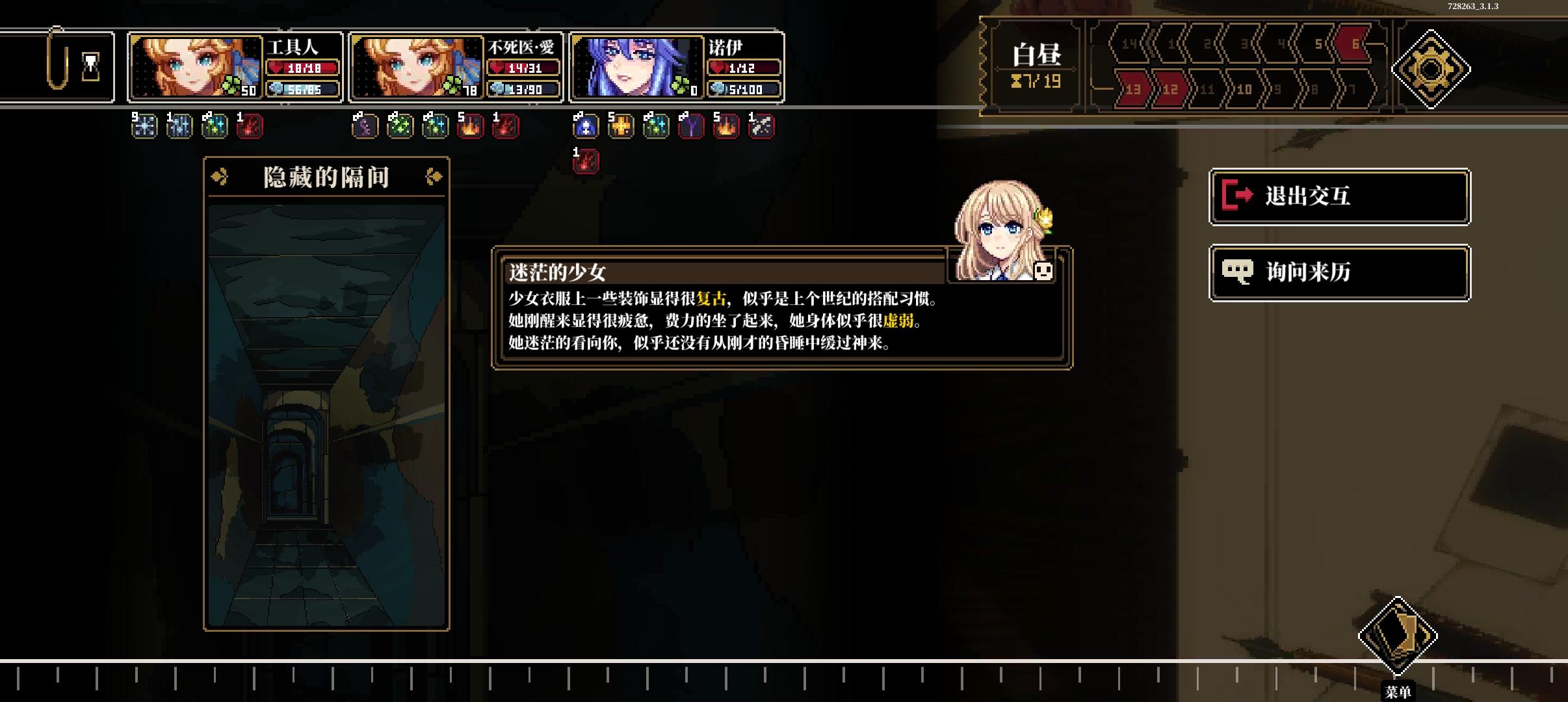 在隔间“探索道具箱”拿碎裂的恐惧面具,以及唤醒少女,询问少女来厉,接受她的委托