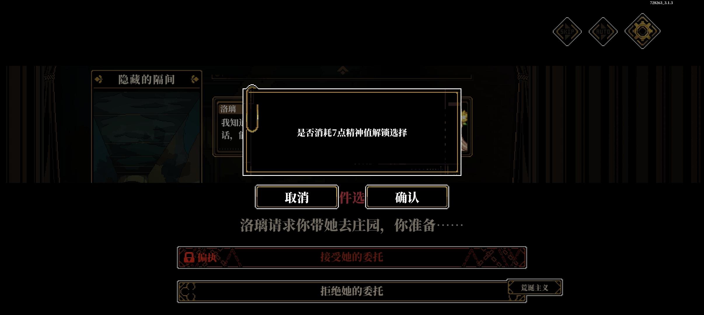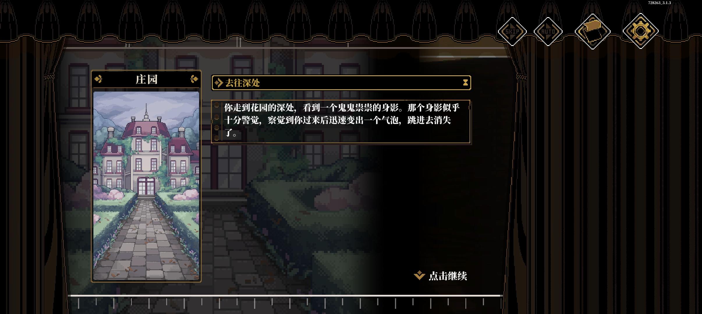 接着去庄园,触发络璃休息,直接“休息等待”让她归队,然后“查看特殊的红雾”,“触碰红色镜子”