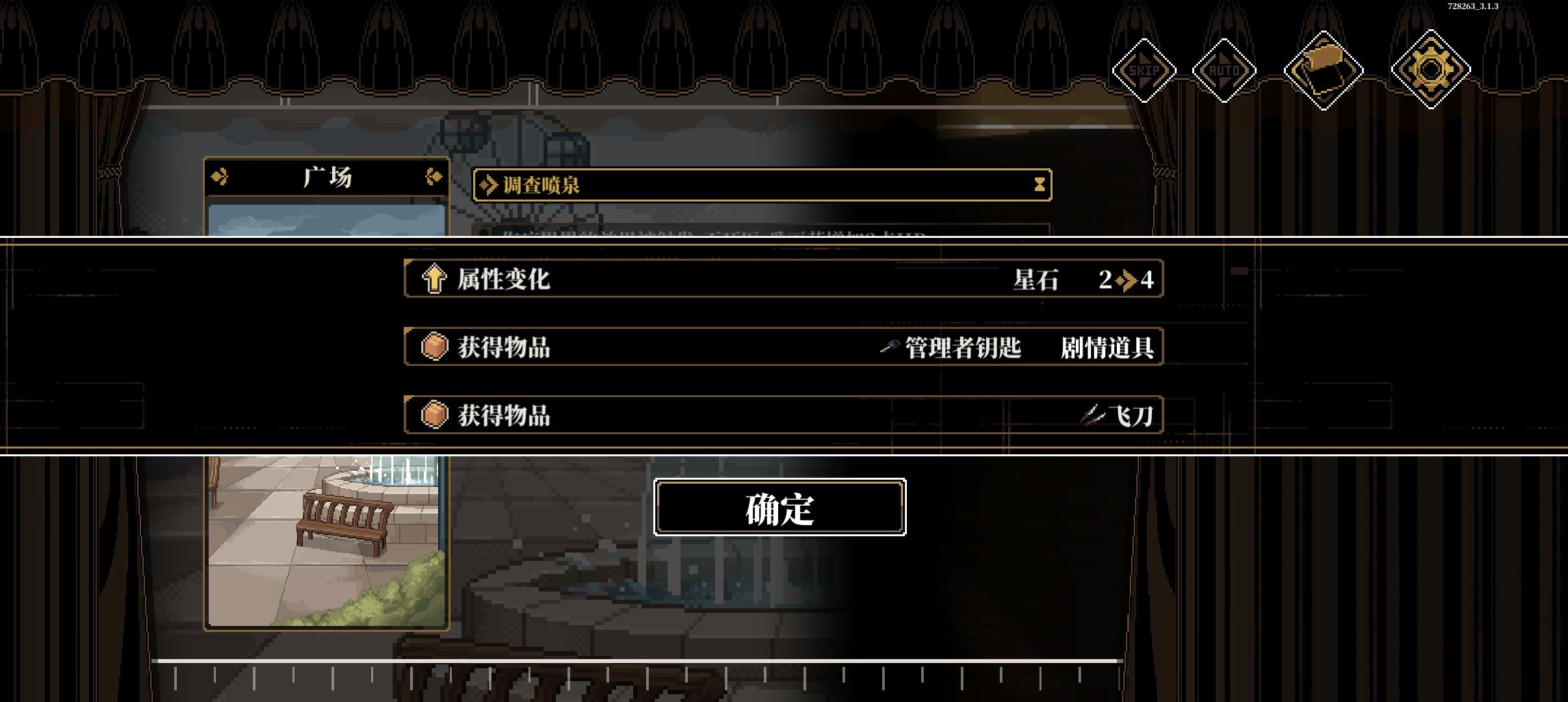 接着来到广场,点“搜索场景”,然后调查喷泉拿钥匙以及拿石剑