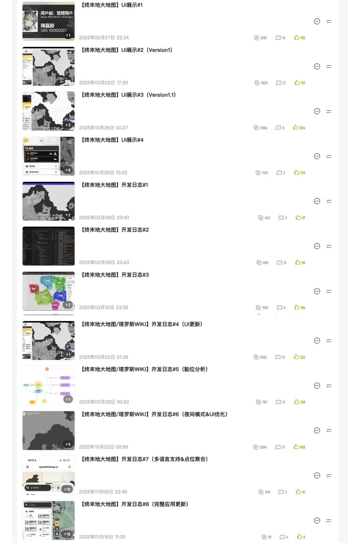 后记:这篇文章是开发日志的最后一篇文章——截至目前,这个几乎由笔者一人完成的地图项目终于完成了绝大多数预期中的功能。笔者自2025年2月底动工此项目,论其动机,是希望用自己的热忱和技术能力做出在审美、性能和功能上都优秀的产品;以求国内与海外的广大玩家用户,不需要不得不使用或臃肿不堪或审美俗气的替代方案。感谢支持本项目的所有人,也欢迎各位在森空岛上查看关于本项目的所有设计与开发思路。我们会择机开放社区参与的地图建设功能。届时,您可以更直接、更迅捷地查看和游戏有关的一切攻略与资讯。敬请期待。
