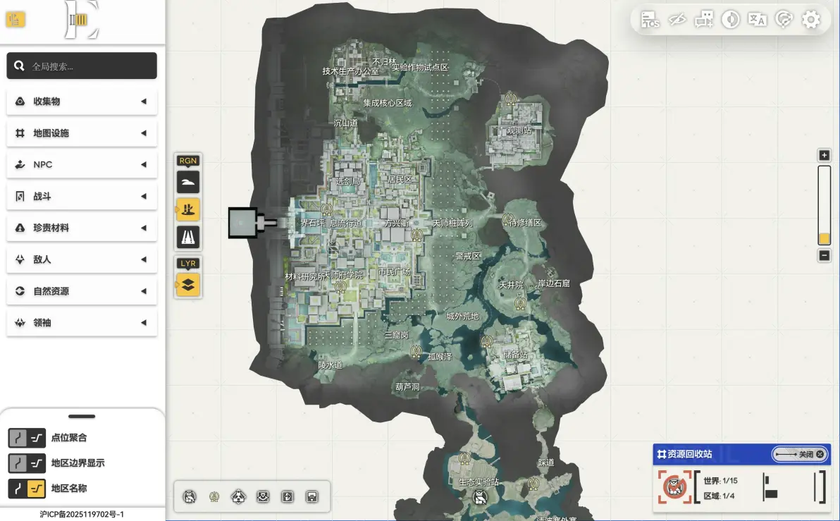 基于三测的数据,笔者根据点位的常用度对点位类型进行了排序,并为游戏内相同标识点(如宝箱)绘制了统一但是易于区分的图标,以便用户更精准地找到需要点位。(图1/图2)