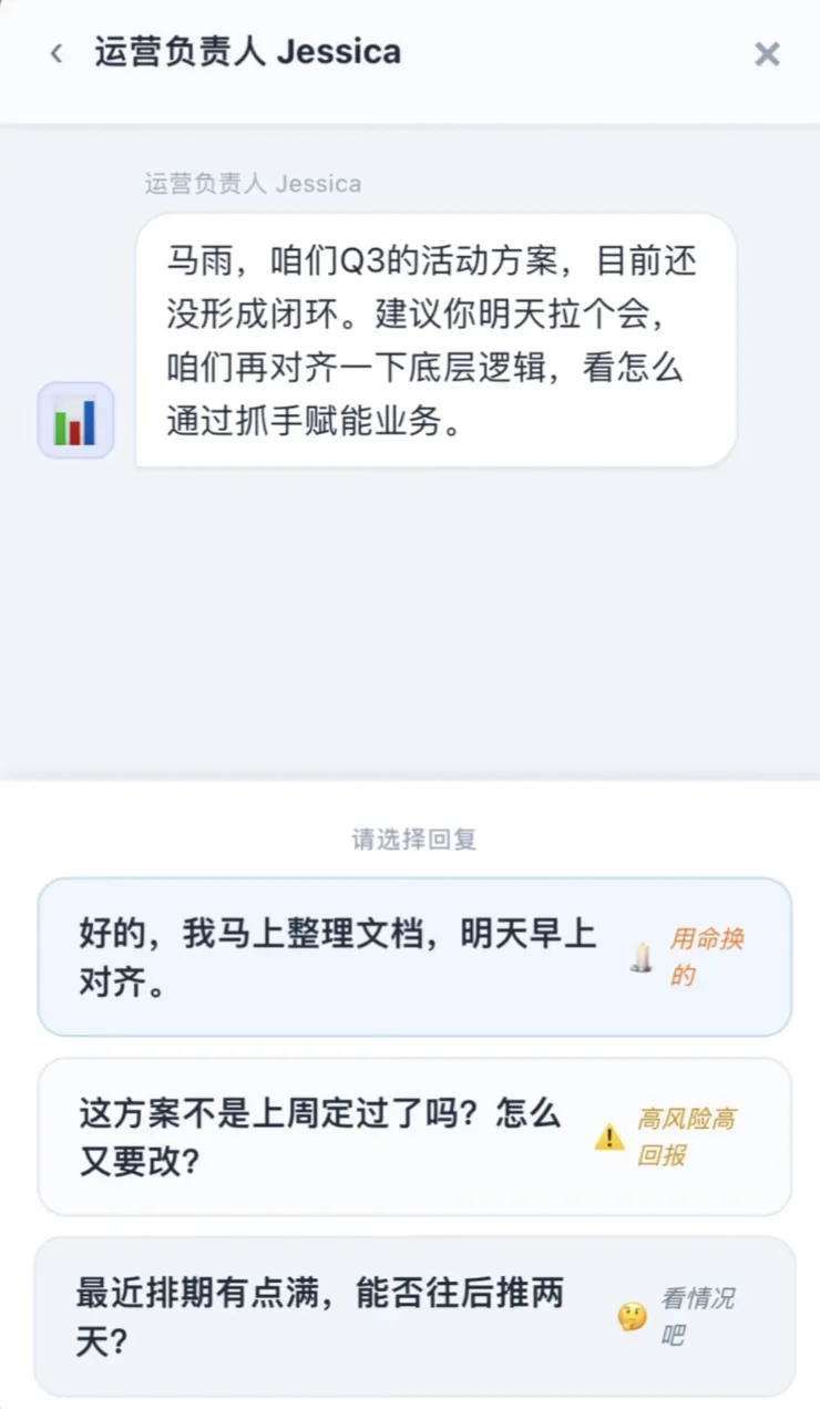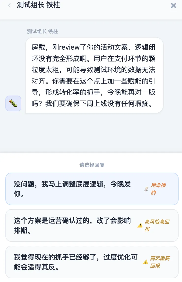 为了更拟真,作者甚至设计了同事有概率已读不回,这种面目可憎的真实感,让打工人本就弯下的腰彻底折了。