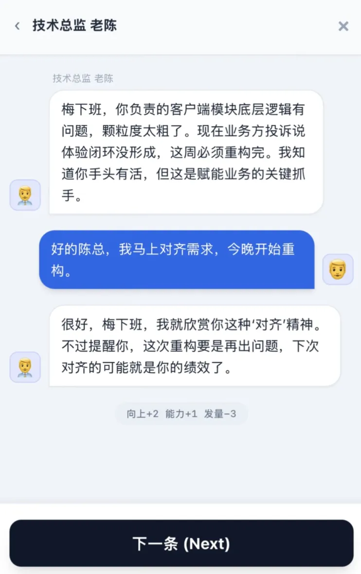 有趣的是,能做出这种硬核职场模拟器的,确实是两个被班味泡透了的大厂职员。值得一提,这两位作者其实没有任何游戏开发经验和代码能力。
