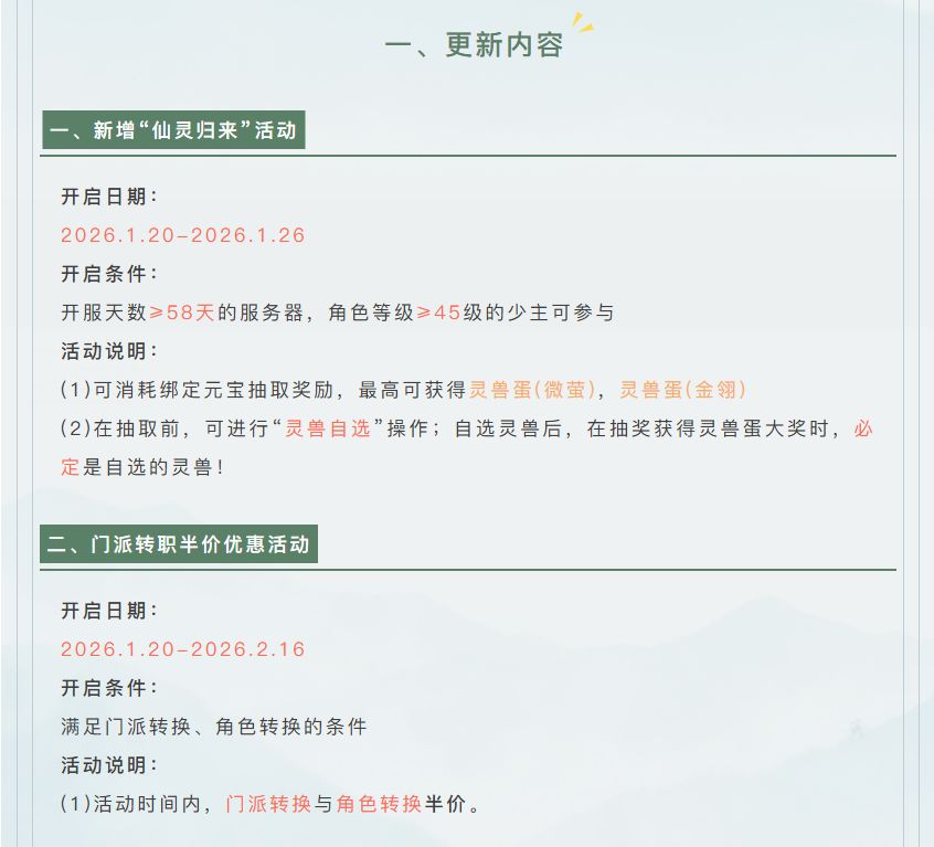更新公告 | 平衡性调整内容全览,灵兽归来、转职半价即将开启!