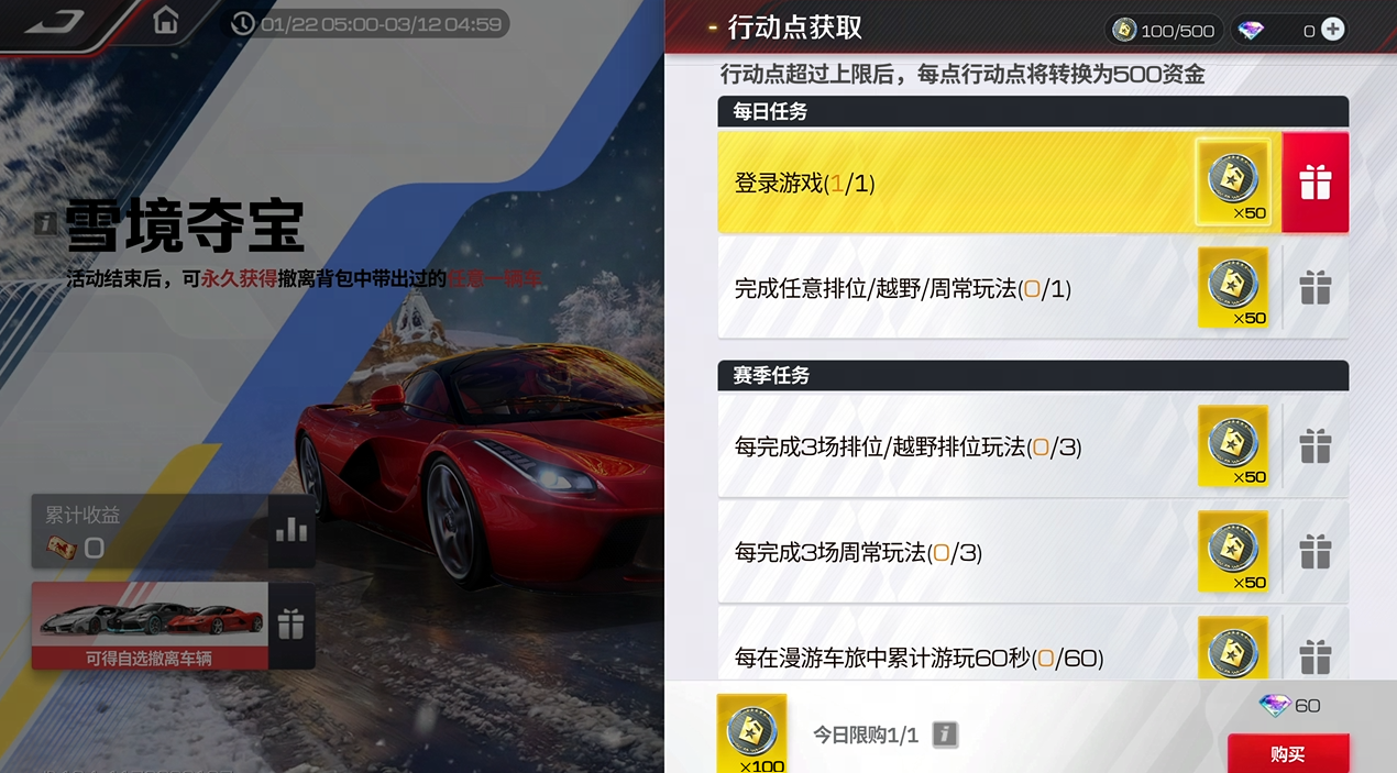 参与雪境夺宝就只有一个终极目标,那就是百万撤离!夺宝之旅即将开启,车手们究竟能在雪境里挖出多少财富?