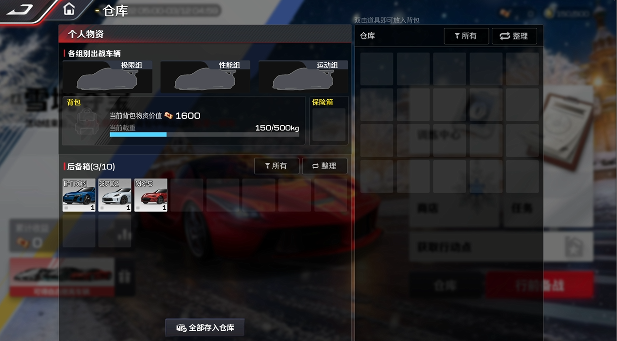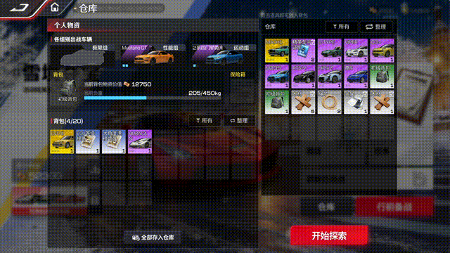 撤离成功后,车手们就可以在仓库整理物资,前往商店把高价值物资兑换成资金,这样就离百万目标又近一步啦~