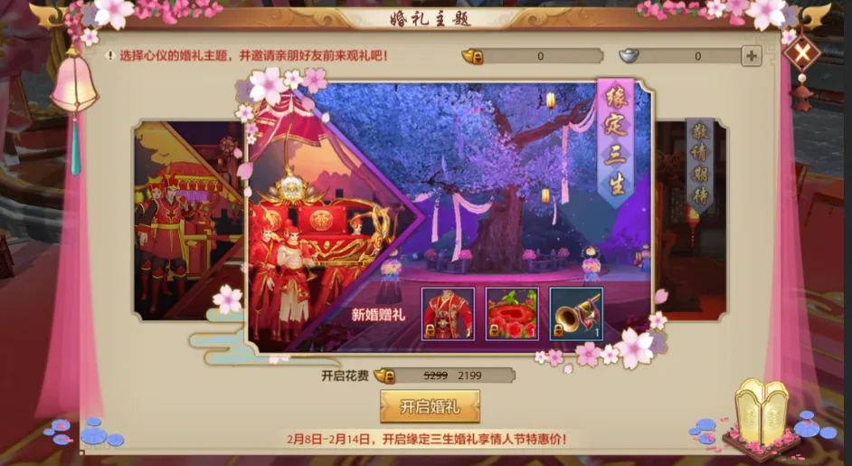 此外,缘定三生婚礼限时可享甜蜜特惠价!原价5299绑元,现价仅需2199绑元,只为你的重要时刻增添一份惊喜。