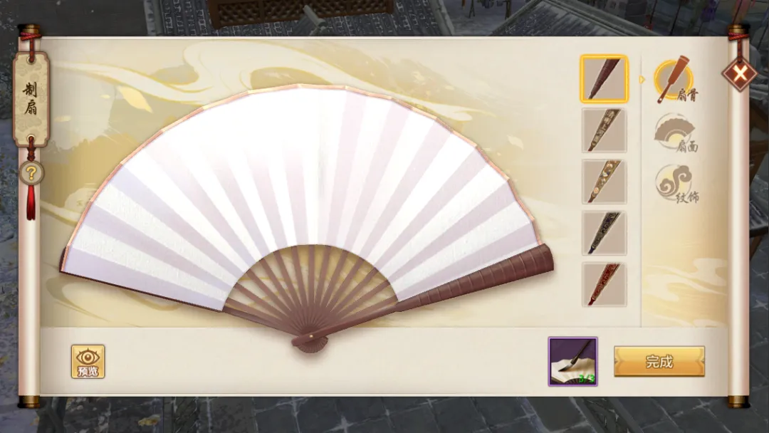 在制作过程中还可以随时进入预览界面,欣赏完成后的整体持扇效果。调整满意后,使用3个丹青引就能激活专属于你的百变外观(有效期5天)!丹青引可通过参与新春活动:烟火贺新年、暖谷沐春、绘福迎吉祥3个活动获取。