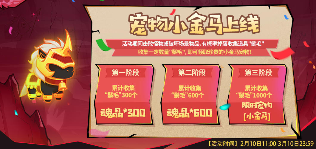 第三阶段:累计收集鬃毛1000个,奖励:限时宠物-小金马。