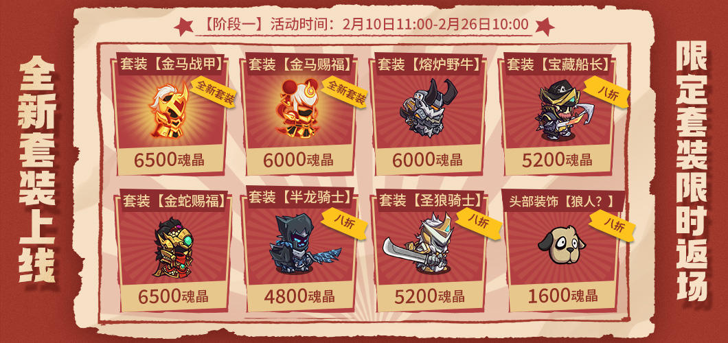 活动期间,首次购买魂晶礼包可享受春节折扣价,每个礼包限购1次。
