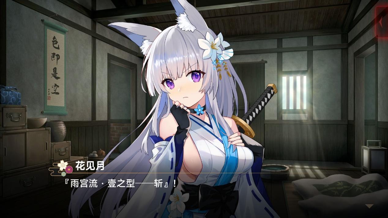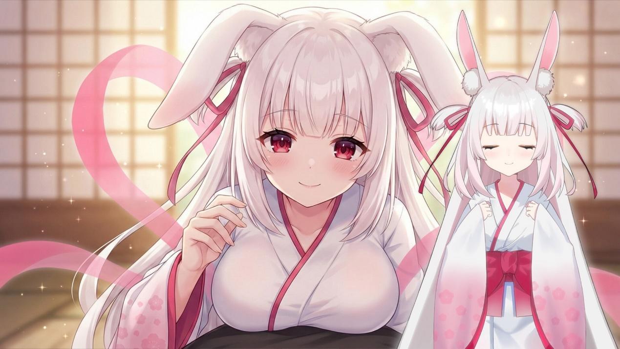 最后,美术与视听方面肯定是本作最大的加分项了。虽然本作的角色人设都属于比较常见的类型,但无论是花见月的温柔与责任感、奈奈的青涩与依赖、还是白兔神明的雌小鬼气质都体现地十分鲜明,再加上本作和风服饰+萌系的融合画风与质量在线的立绘,还有动态的眨眼和猫耳效果,咱肯定是无法拒绝了。可以说本作登场的每一个萌妹子,都能命中咱的XP。