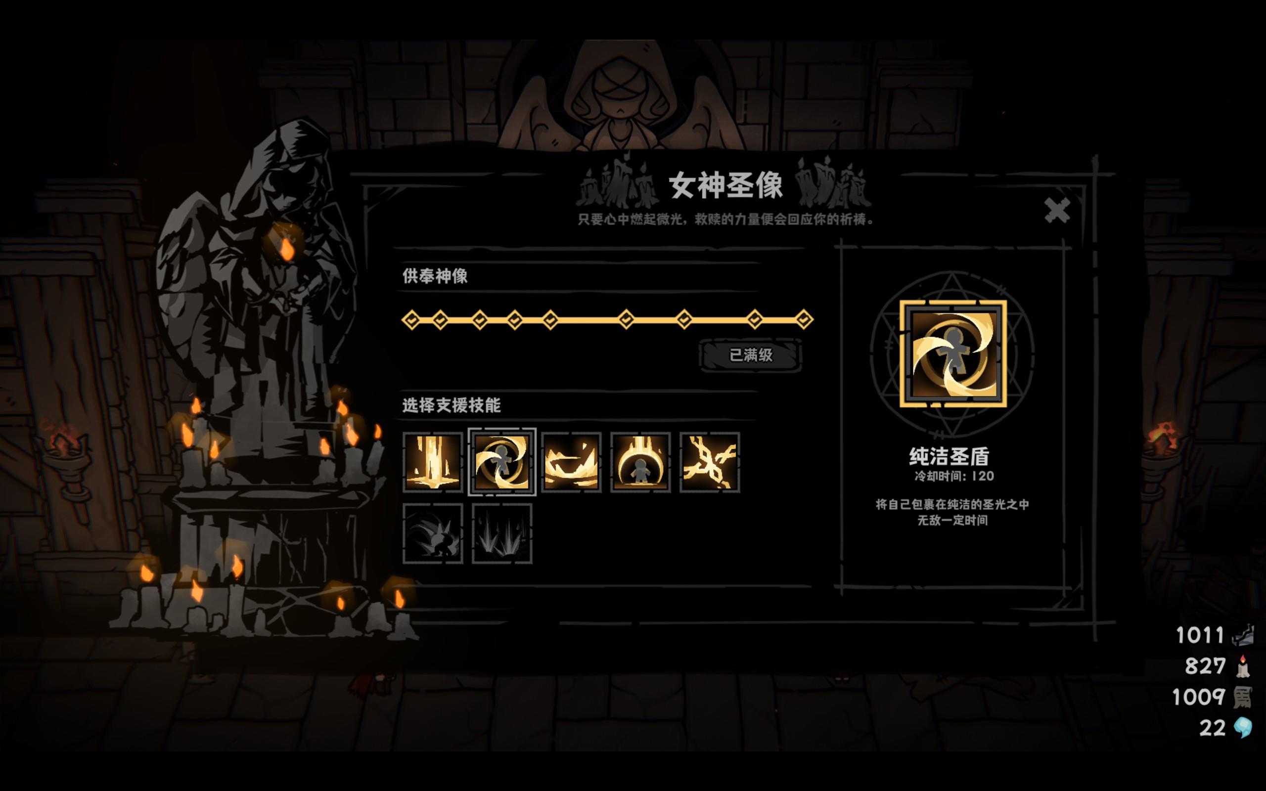 铁匠那边除去升级图书馆,还可以建造女神像,也就是大招,这里需要花费大量的蜡烛,强度中规中矩,可以提供局内的大招,不过目前来说5个已经够用了。