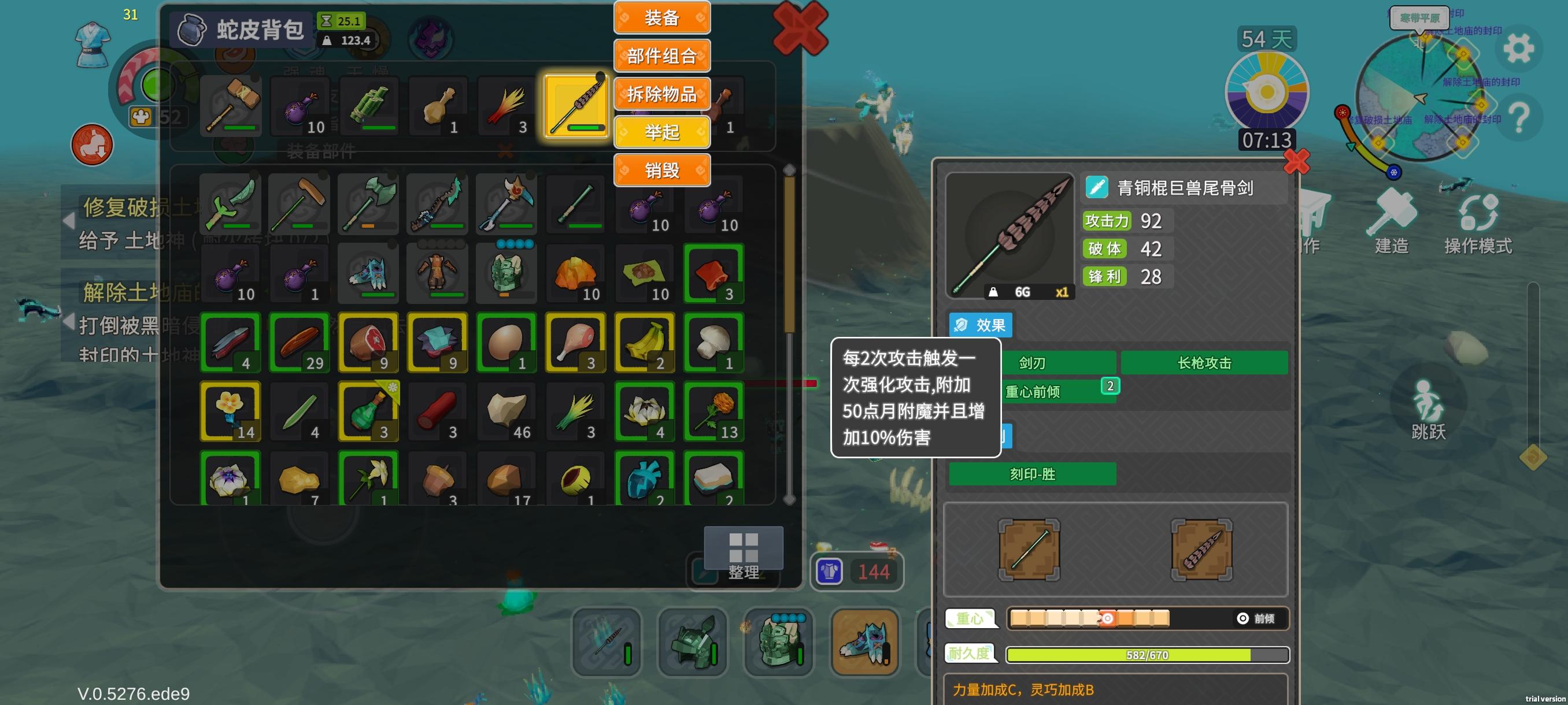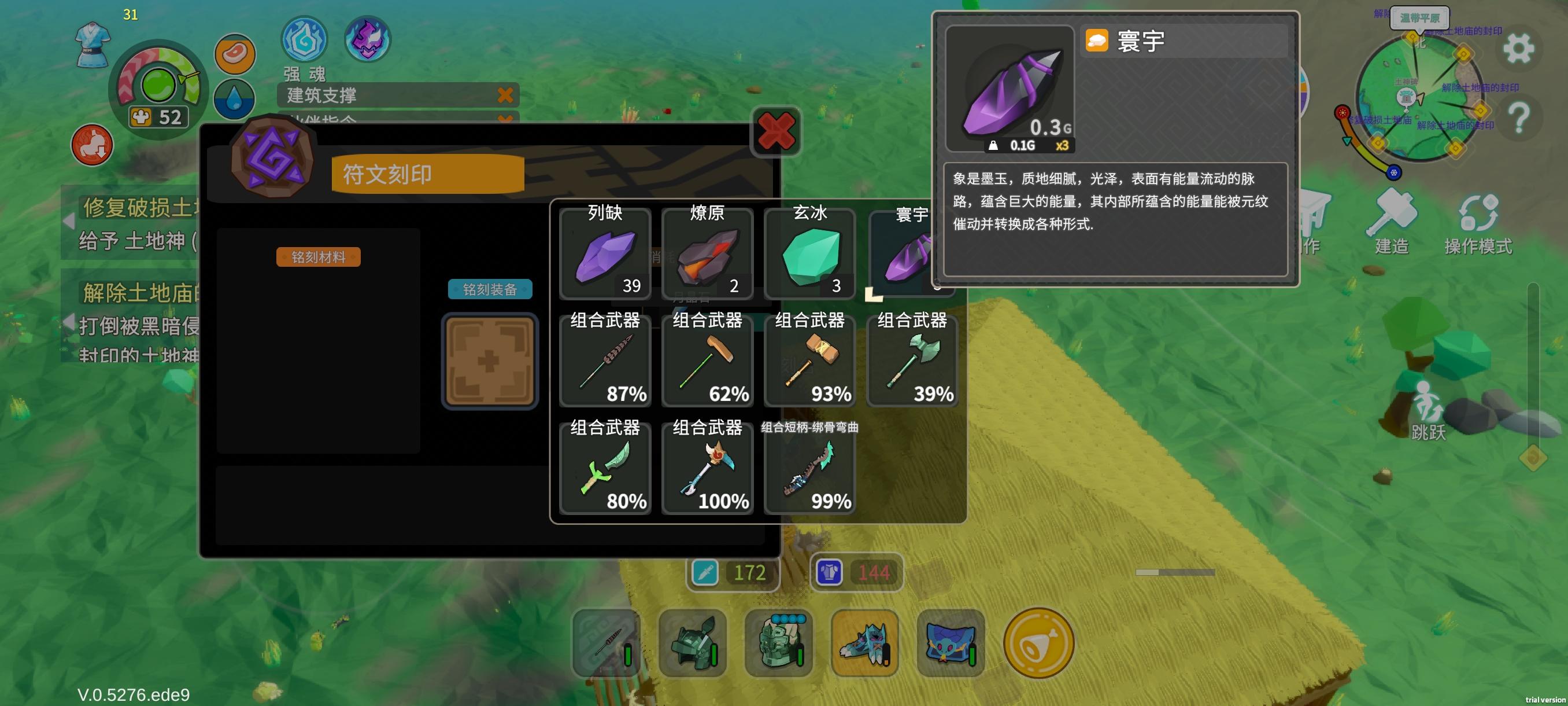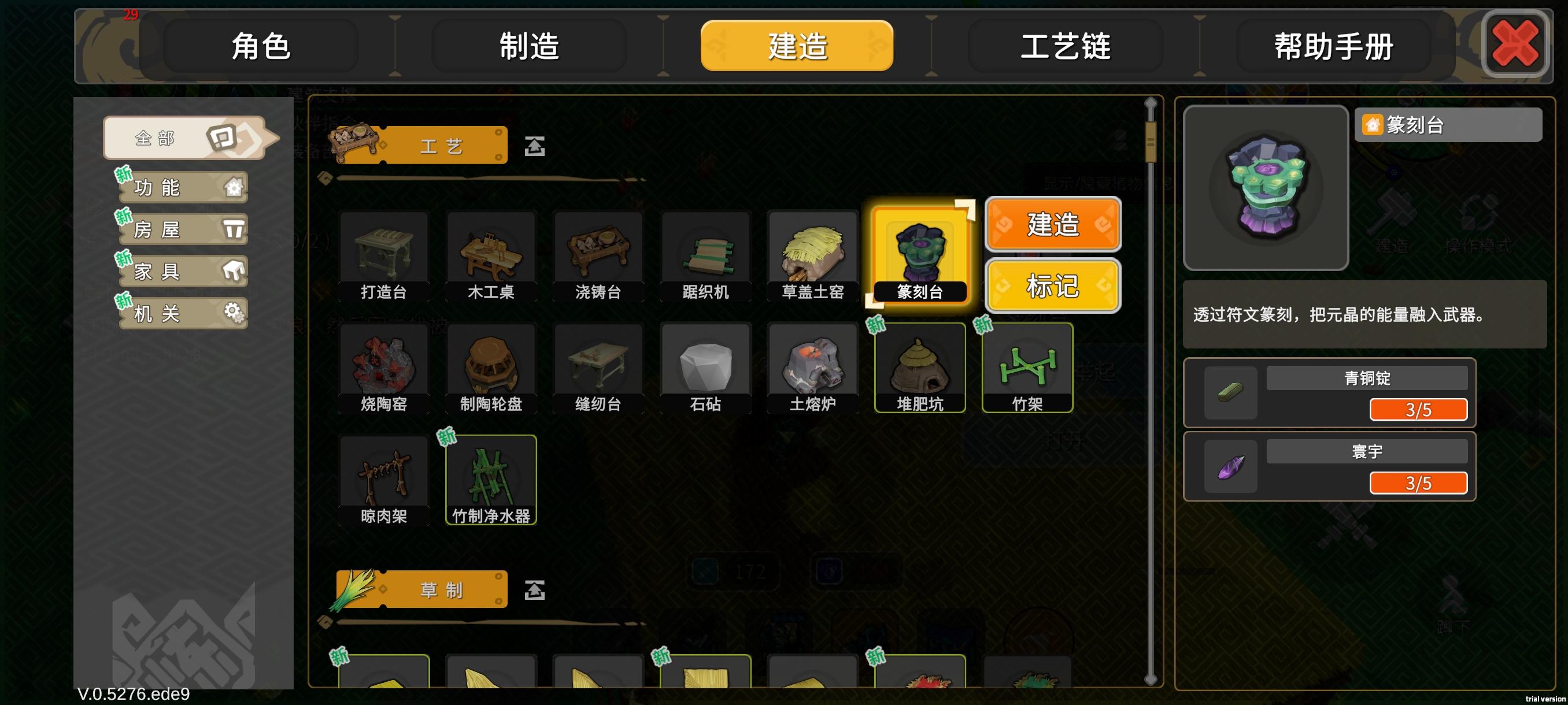 附魔需要造这个篆刻台,材料需要寰宇,这个是矿石,叫天外陨铁啥的,雪山和野猪王地附近我都见过,但数量不多。打营地的法师有概率获得各种元晶,然后就可以给武器附魔了,有各种效果,我也是瞎玩的