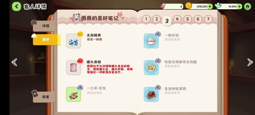 也就是说,白色不喜欢的食物,第一次吃能获得45点亲密度,和蓝色喜欢吃的一样。如果碰巧喂了喜欢吃的就是55点,快赶上紫色食物了,所以不用一直喂使徒喜欢吃的,也不用费劲去查,把没吃过的挨个喂,亲密度涨的反倒比一直喂使徒喜欢吃的食物快。