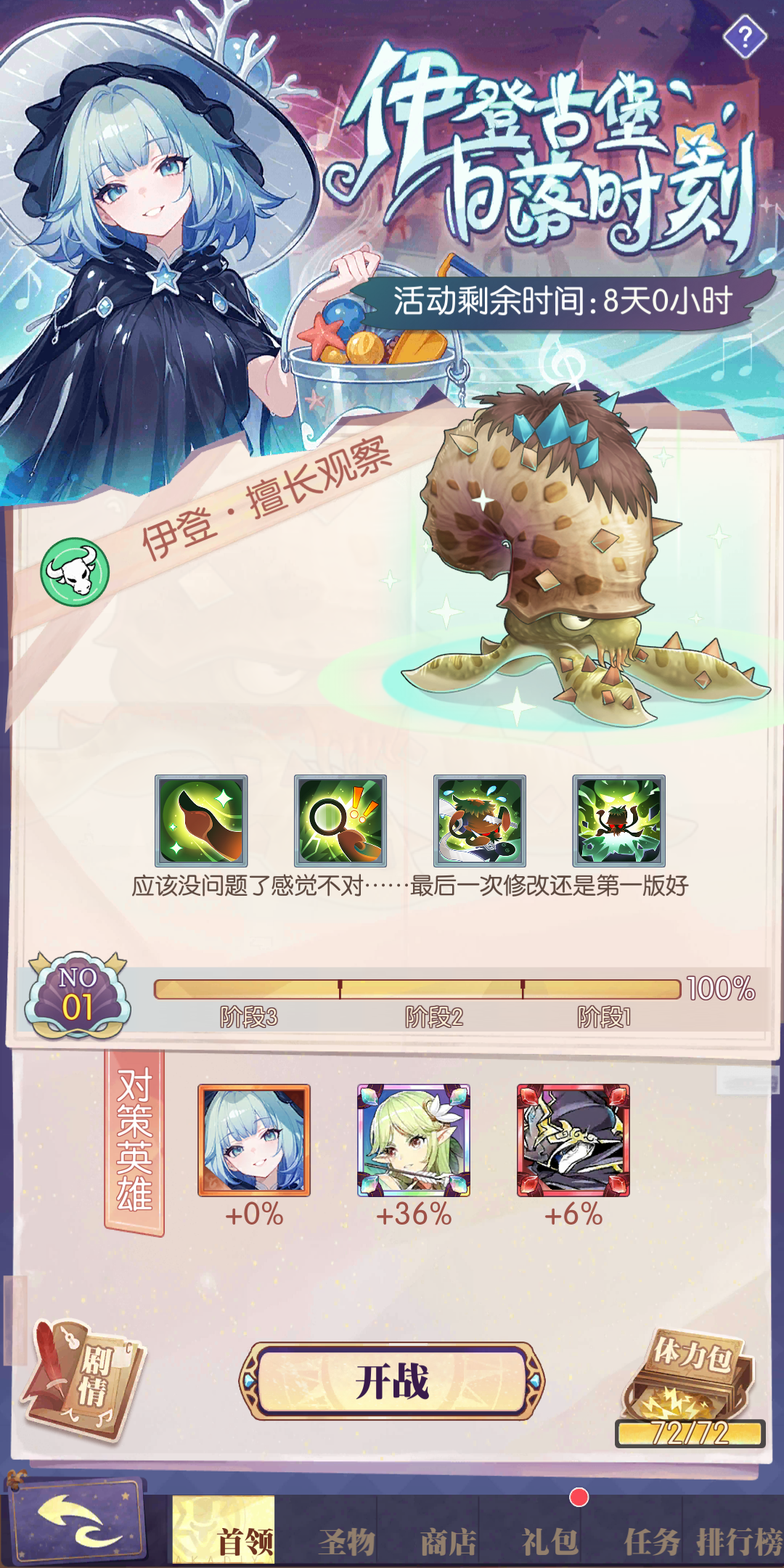 本活动中,首领“伊登”分别有3个阶段。