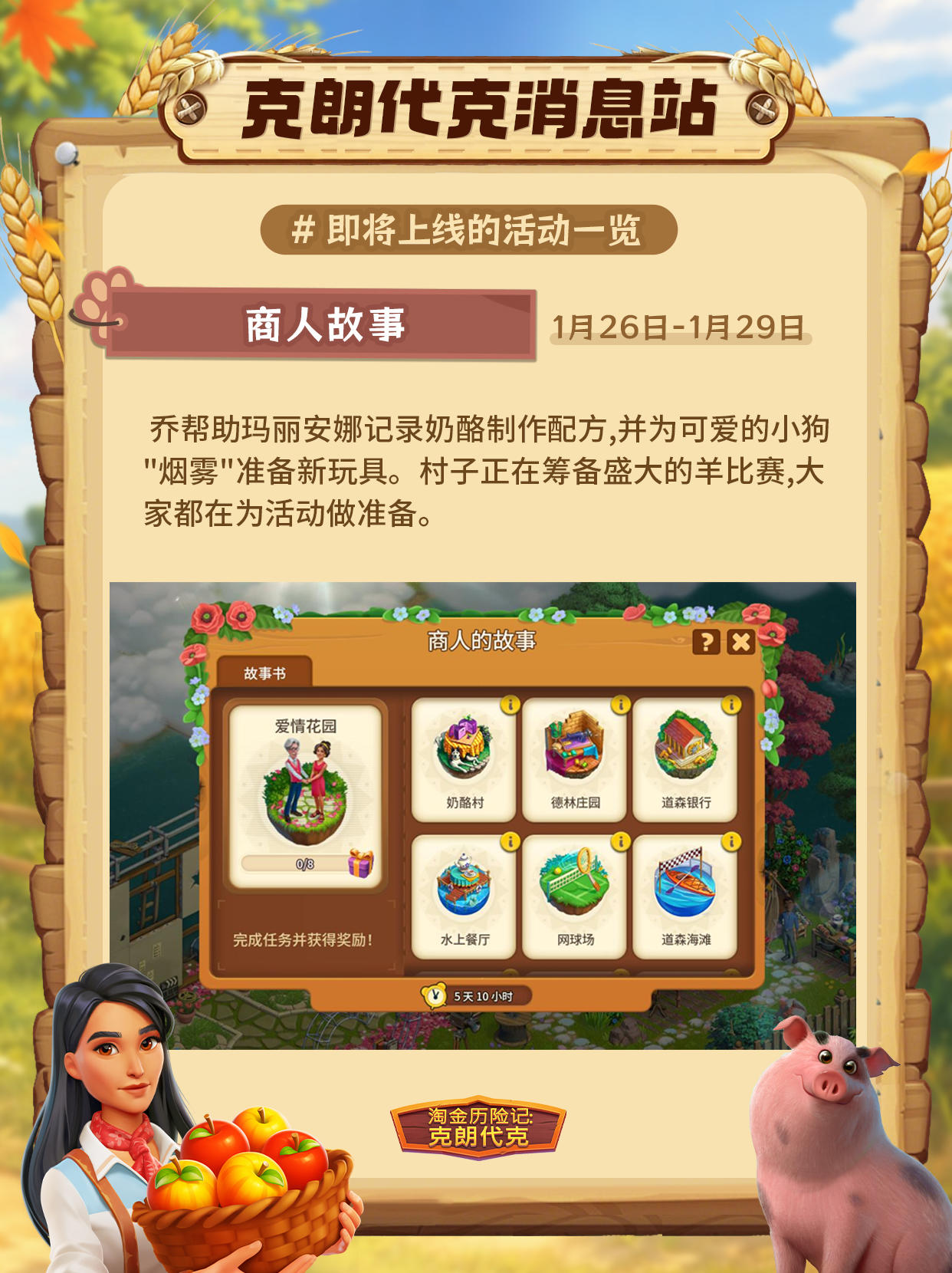 🐶小K提醒: 每周限时活动将会产出非常多有用的资源和限定装饰,农场主们不要错过,请自行安排喜欢的活动参与游玩哦!