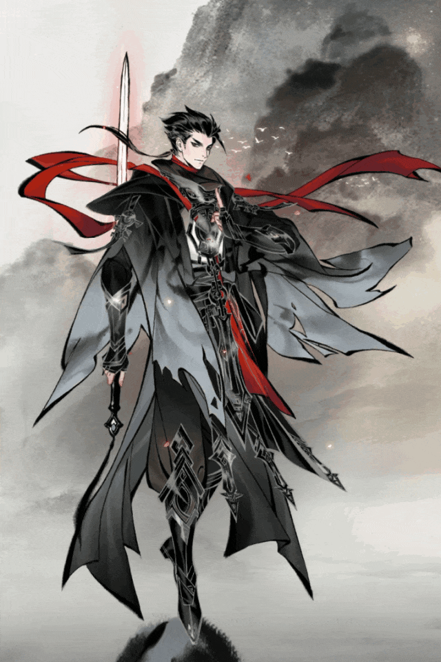 玄色为底,红绸如焰,撕裂衣摆迎风凛冽