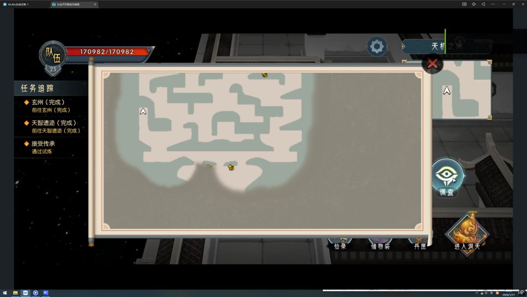 过了传送阵,我们来到了天机之间,主线任务七完成。