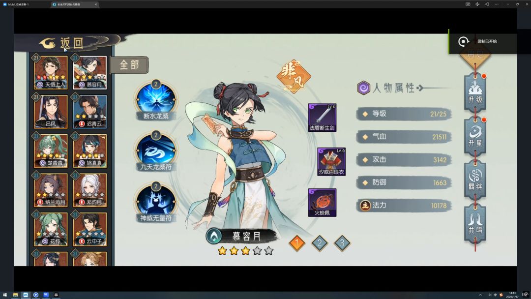 击杀完小怪之后我们继续向左走,碰到了师弟师妹,结果发现居然有第二个自己,此时如果你没有令牌,就会被三人联手击杀,陷入轮回。不过好在我们提前拿到了令牌,我们的令牌直接击碎了对方的令牌,开始战斗。假吕风的攻击非常高,我们也寻求一回合击破,记得将天悟的凝符换成法力。如果一回合打不死,可以考虑把慕容月换成林瑶,打两轮爆发。