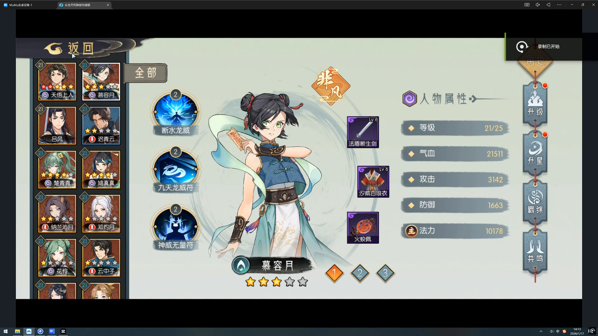 要注意紫灵会给我们上高额的毒,所以我们一回合爆发秒掉他, 记得将天悟的凝符换成法力,如果一回合打不死,可以考虑把慕容月换成林瑶,打两轮爆发。