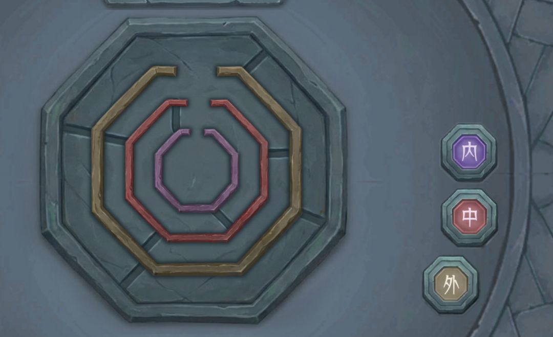 这一关的玩法也很简单,中间的阵盘对应着门的开口,我们只需要将阵盘排列组合一下就可以探索完全部的区域了。