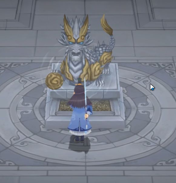 第一关的任务道具在地图左上角的龙那里,我们和龙对话,获得摄魂铃。这个时候我们再向下出发前往山脚。
