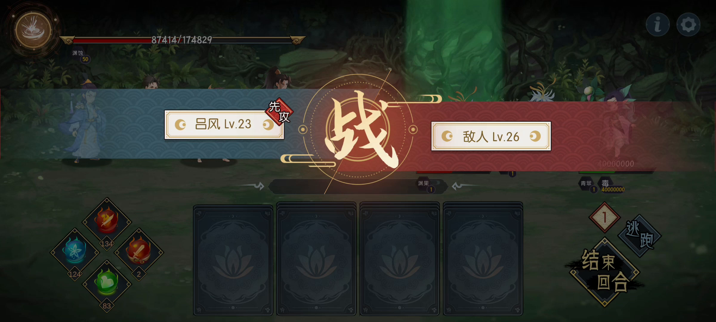 此处有一个debuff叫灵噬,效果是回合结束,每剩余一个灵气,失去30%气血,所以我们要把灵气全部消耗完毕才行。建议按我的顺序走,我们先去解决boss,之后我们就不会被秒杀了。